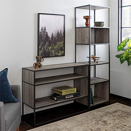Have someplace to stash your book collection, work supplies, and décor with this 2-piece industrial bookcase set. Including a tall, 5-shelf bookcase and a wide bookcase to showcase together in your living room or home office, or apart in your kitchen, bedroom, entryway, or hallway. The wide bookshelf can also be utilized as a TV stand, storage console, or buffet. Both made with a metal frame and high-grade MDF, durable laminate shelving in a wood grain finish. You'll love the rustic, urban industrial design style they create within your living space for an on-trend feel. This set includes a tall bookcase and wide bookcase.