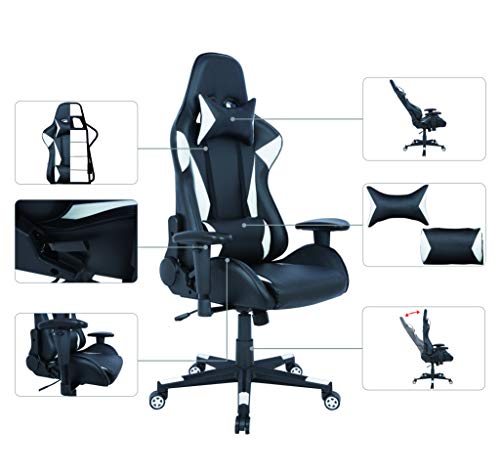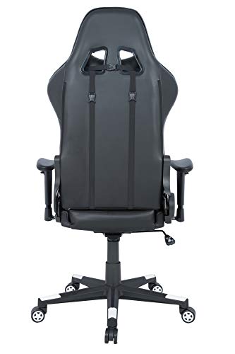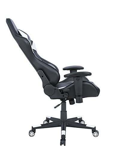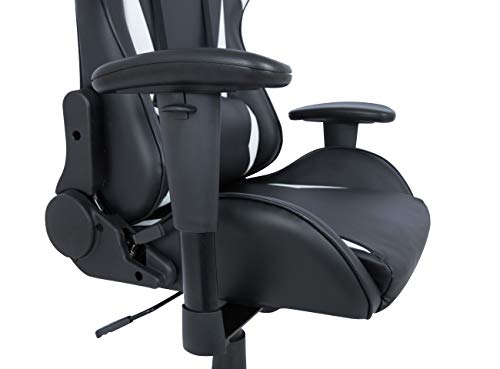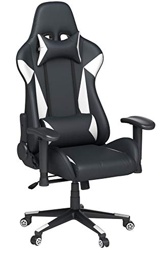 An Amazon BrandHigh-back gaming chair provides ultimate comfort and control, whether at work or play; black with white accents