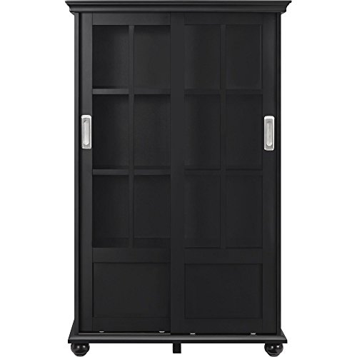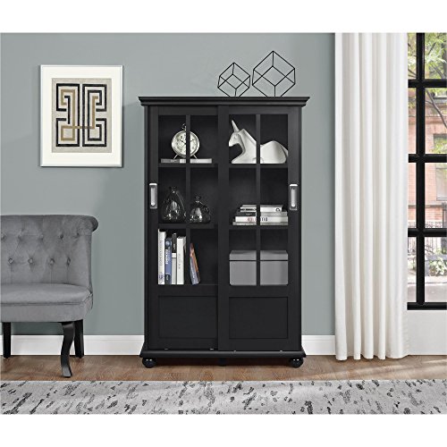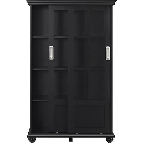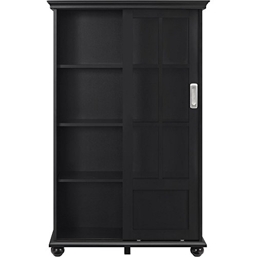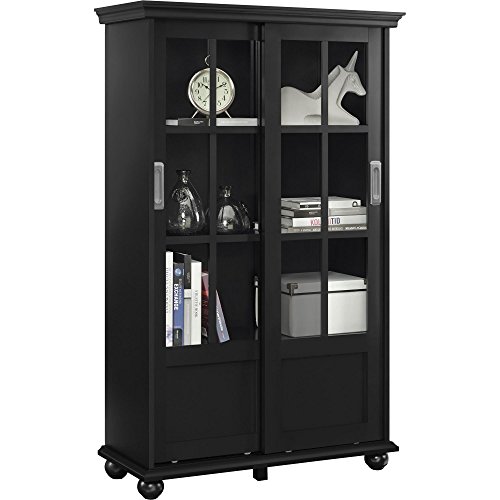Featuring an exceptional design, the Ameriwood Home Aaron Lane Bookcase with Sliding Glass Doors is a practical and beautiful addition to your home. The sleek Black finish looks stunning when contrasted with bold colors, or it can bring a subtle sophistication to your home when paired with neutrals. This Bookcase includes 4 shelves behind the 2 sliding doors. There’s plenty of storage space for books, personal items or to display décor. The sliding glass doors protect your books and keepsakes from dust. Ameriwood Home Aaron Lane Bookcase with Sliding Glass Doors requires assembly upon delivery.The versatile Ameriwood Home Aaron Lane Bookcase with Sliding Glass Doors is right at home in your living room or home office