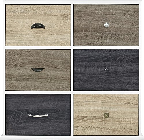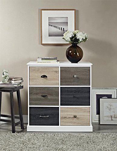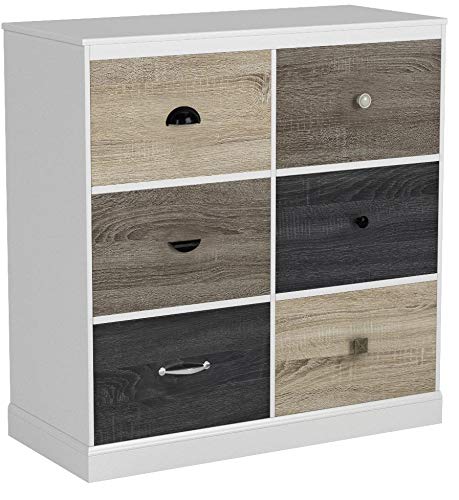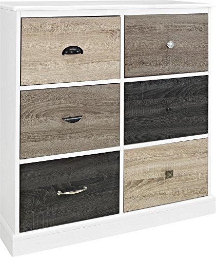 Transform your living room, bedroom or office with the Ameriwood Home Mercer 6 Door Storage Cabinet with Multicolored Door Fronts. The cabinet features 6 spacious drawers, each finished with a slightly different color to create a sophisticated look for a modern or transitional scheme. Additionally, 6 knobs of varying styles are interchangeable to help fashion a customized look. In the living room or office, utilize the storage space to conceal books, DVDs, glassware and toys. You can also use this unit in the bedroom to stow away clothing and blankets. Two people are required to assemble this 36"h x 35"w x 15.8"d cabinet.Update your office, living room or bedroom with the customizable look of the Ameriwood Home Mercer 6 Door Storage Cabinet