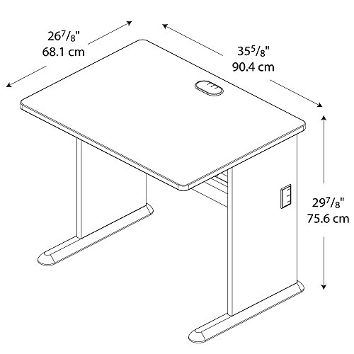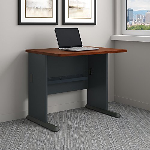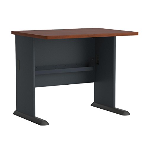 Small but strong, the Bush Business Furniture Series A 36W Desk fits in tight spaces and endures years of everyday use. Thick end panels and a durable thermally fused laminate surface fend off scratches, stains and dents for long-lasting professional quality. The comfortable C-Leg design offers loads of legroom, while a comprehensive wire management system organizes and secures computer cables to keep them out of your way. Sturdy Desk feet include encapsulated steel armature and adjustable levelers for use on all types of flooring. The Office Desk accepts a coordinating Hutch, Mobile File Cabinet, Keyboard Tray or Pencil Drawer (all sold separately). Series A completes your multi-person workspace, classroom, home office or anywhere in between with a variety of configuration options. Featuring 7 attractive two-tone finishes, clean lines and contemporary styling, this commercial office furniture adapts to your surroundings. Customize any environment with a complete line of affordable products and accessories, all backed by a 10 Year Warranty. Series A withstands the rigors of a 40-plus hour week and meets ANSI/BIFMA quality test standards. American made with U.S. and imported parts.Thermally fused laminate finish fends off scratches and stains