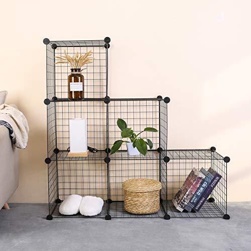 MULTI-PURPOSE USE: Made of resistant wire grids, this 6-cube bookcase can allowing you to place your books, paperwork, clothes, bedding, towels, toys, bags, accessories and more.