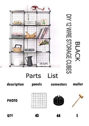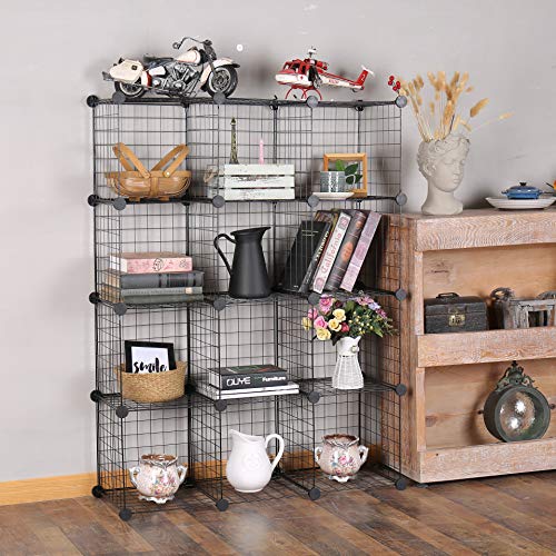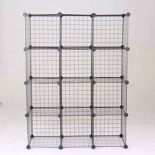 Product Description:C&AHOME Metal Wire Storage Cubes, Storage Storage Cubes Shelves,DIY 12-Cube Closet Cabinet and Toys Shelving Grids, Wire Mesh Bookcase Shelves, Shoe Rack, Multifunction Shelving Unit, Black.12-cube wire storage shelves are great for organizing your various stuff, which provides plenty storage room without taking too much space, and store your things in an organized way.
