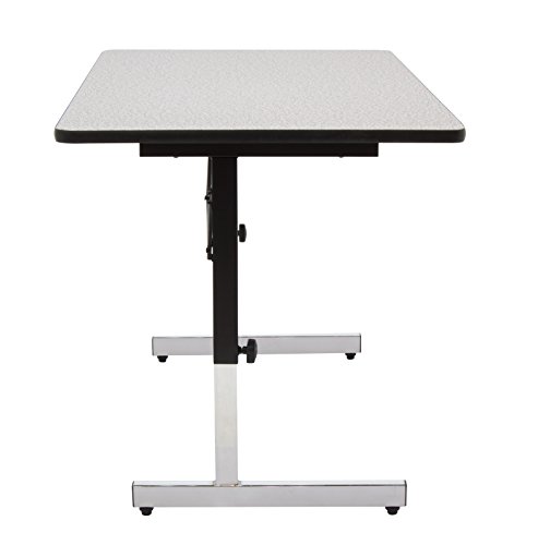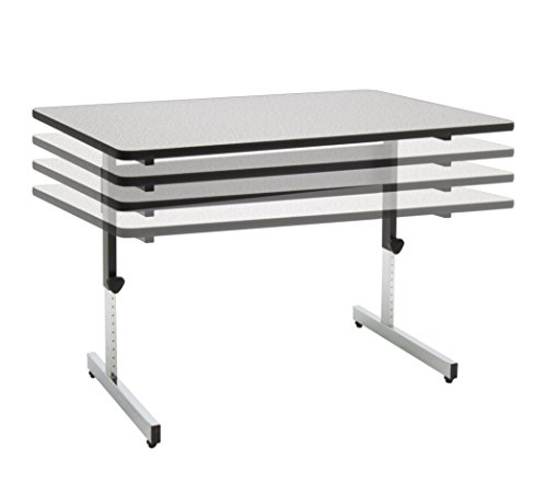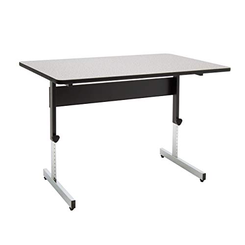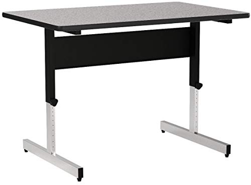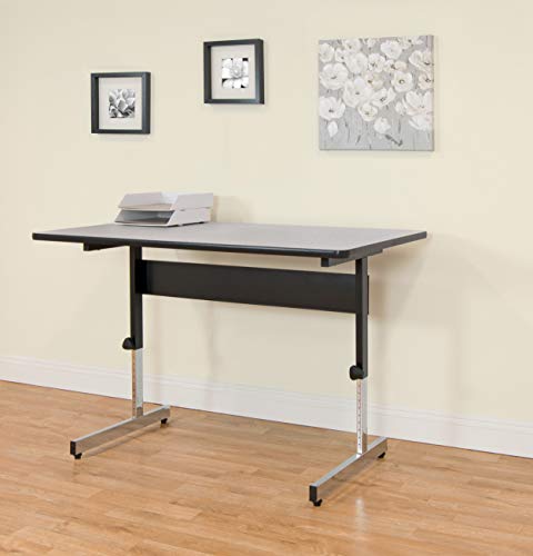The Adapt Desk by Studio Designs in handsome Black/Spatter Gray is versatile enough to suit any job at work or in the home. The desk adjusts in height from 22 to 32 inches in 1" increments. Its durable construction includes a sturdy base with floor levelers for stability. The attractive wood surface supports heavy office items like computers and books thanks to its 1" thickness and T-mold edge band. Main work surface: 47.5''W x 30''D.Overall Dimensions:47.5"W X 30"D X 22" - 32"H, Main Work Surface: 47.5"W x 30"D