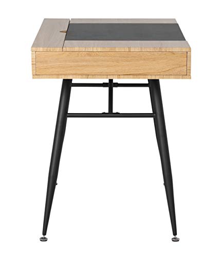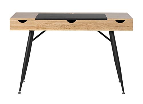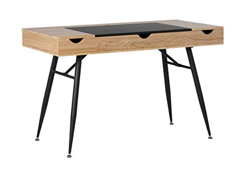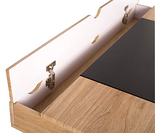 Everything in its place and a place for everything. That is why the Nook Desk with Multiple Storage Compartments by Calico Designs is the perfect solution for keeping your desktop space clear. The sleek, modern design and easy assembly make it the best choice for remodeling your home office. The four soft-close tops keep fingers safe from injury. Each compartment has cord management holes, so you can charge your electronics while they are stored. The main compartment has a 26.5” W x 18” D x 3” H opening for storing a laptop or tablet. The 2 side compartments have an 8.25” W x 18” D x 3” H opening. The rear compartment has a 46” W x 3” D x 3” H opening. The entire desktop ships assembled. Attach the leg support system to the desktop in a few easy steps and you are ready to enjoy your new desk. Available in a Black/Ashwood finish (Item # 51250) or a White/ Dark Walnut finish (Item # 51251).Assembled Dimensions: 47.25" W x 23.75" D x 30.25" H, Main/Center Compartment -26.5" W x 18" D x 3" H, 2 Side Compartments- 8.25" W x 18" D x 3" H , Rear Compartment - 46" W x 3" D x 3" H