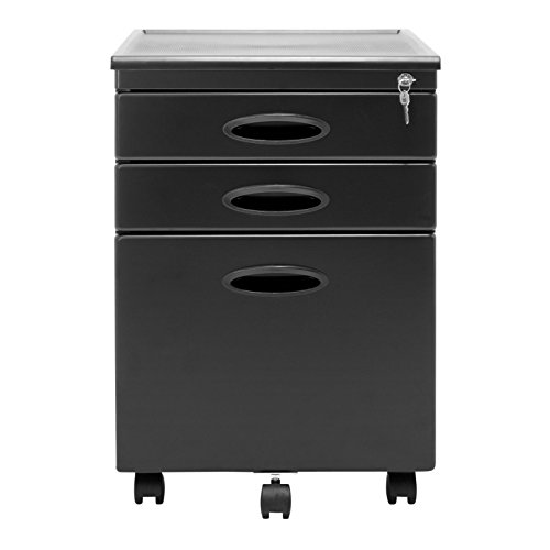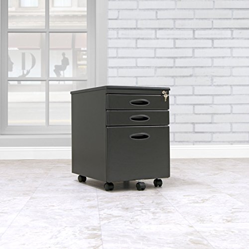 Finish your home office with a simple and well designed storage solution, the Mobile File Cabinet from Calico Designs. This compact storage cabinet is ideal for any business or home office, especially one tight on space. The full file drawer holds letter or legal size files and the 2 smaller drawers hold all your other office supplies. Move it around the office easily on the caster wheels. It also fits under most desks, thanks to its height just under 2 feet. If you want to keep your business private, just lock up the drawers with the keys!Compact storage for business or home office