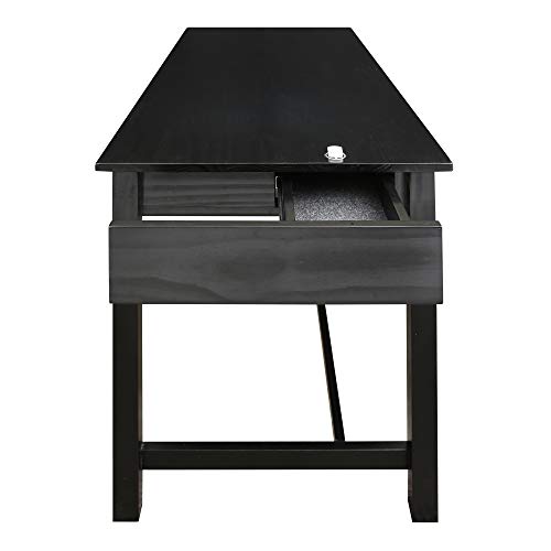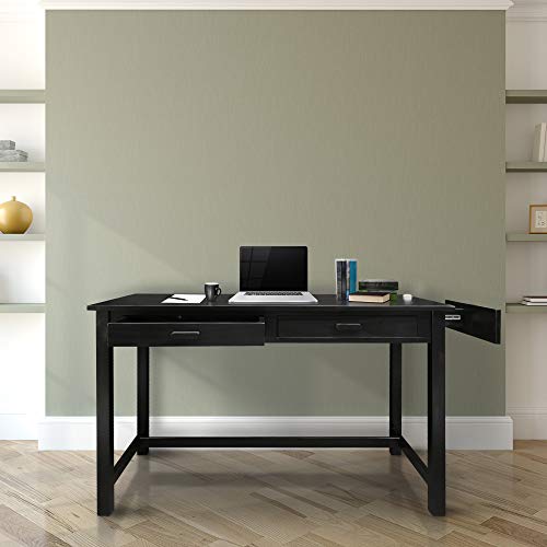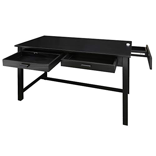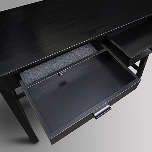 The Jefferson Work Desk with Concealed Side Drawer is an ideal companion for any home, office, entryway, or bedroom. Equipped with 2 separate concealed compartments, it is as versatile as it is practical. The main compartment sits on the right side of the desk. Decoy side wall completely disguise the hidden side drawer. Its further secured with a magnetic lock. Perfect for concealing valuables and other belongings. Despite the back compartment, both drawers are still perfectly functional; the left drawer features an extra drawer stop that can be unlatched with one hand to reveal the 2nd compartment. The sleek black finish gives the desk a modern style with classic appeal as the Solid Wood construction ensures lasting beauty, strength, and longevity. Ideal for those who value safekeeping and privacy. The concealed compartment acts as an added layer of protection where and when you need it most.Smooth gliding slide out compartment enables you to securely conceal valuables and more.