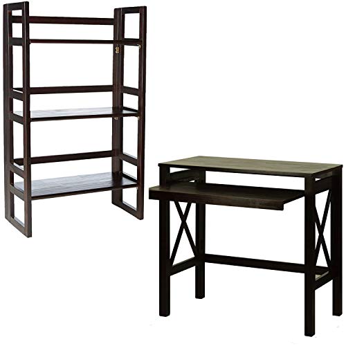 Montego Folding Desk with Pull-Out Tray-Espresso -Modern X-Design adds a contemporary elegance to your room ,Slide-out shelf (for keyboards or an additional writing surface) maximizes your workspace