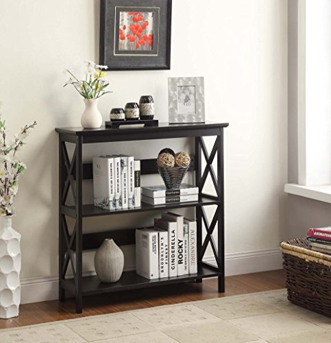 The Convenience Concepts Oxford 3 Tier Bookcase is a great addition to any home office. Featuring 3 spacious shelves that allow plenty of space for anything from books to collectibles. The Oxford bookcases easily fit with most decor, so you can enjoy it for years to come. Coordinating pieces are also available sold seperately.Glossy black finish
