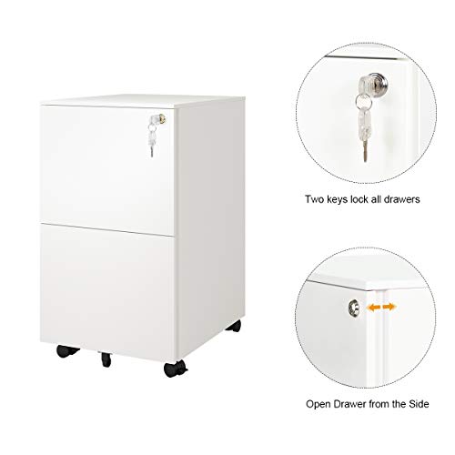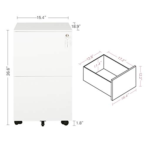 * 15.4"W x 18.9"D x 26.6"H - 2 drawers mobile filing cabinet fits under most desks;