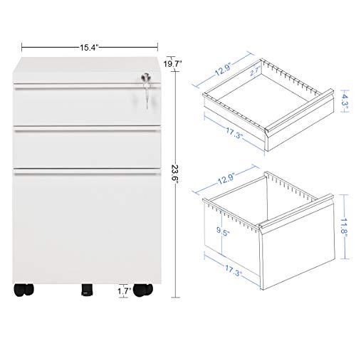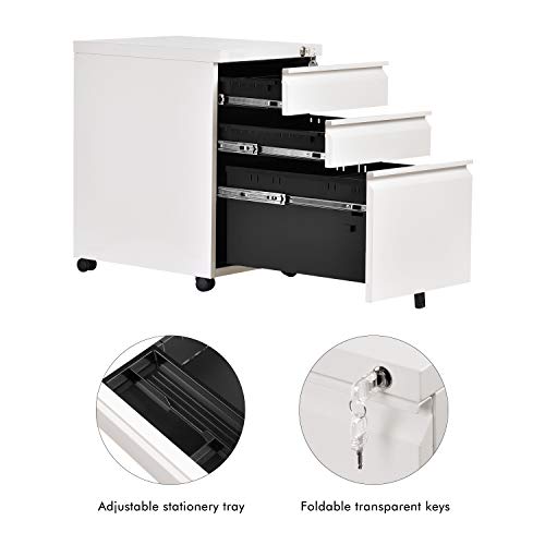 * 2 Colors: Black and White23.6" height - 3 drawers mobile filing cabinet fits under most desks.