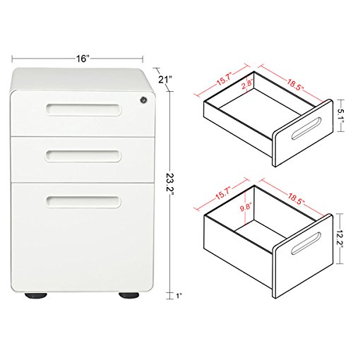 * 16" W x 21" D x 24.2" H (including wheels) - 3 drawers mobile filing cabinet fits under most desks;