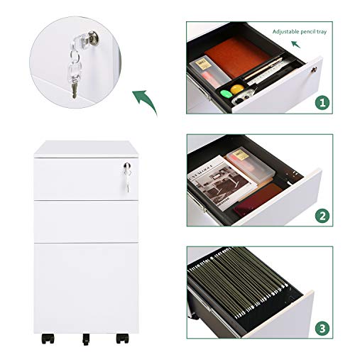 This 3 drawer locking file cabinet fits under most desks