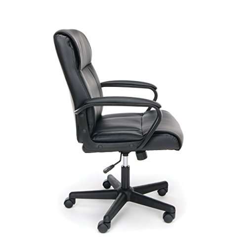 The Essentials by OFM seating collection is where quality meets value. The ESS-6010 office chair features luxurious SofThread leather for an upscale look and feel, making it a smart and stylish solution for any application. The contemporary tapered arms add to the modern appeal. The back and seat are designed with segmented padding, providing total body support. It also offers simple and intuitive controls such as pneumatic seat height adjustment, 360 degree swivel, tilt tension and tilt lock for added customizability and comfort. The comfort, stylish look, and price point of this chair make it a perfect addition to the office, whether at work or at home. This chair meets or exceeds industry standards for safety and durability, and is backed by our Essentials by OFM limited warranty.EXECUTIVE SWIVEL CHAIR: The smooth, pliable SofThread Leather seating surface with tailored stitching detail gives an upscale, luxurious feel at a compelling price