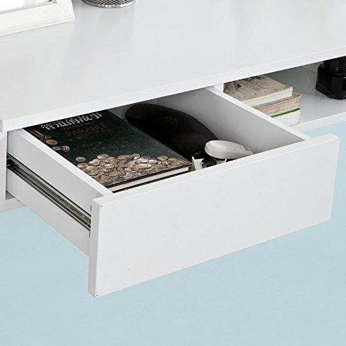 Convenient and space-saving wall table is good choice for your home and office. Designed for maximum convenience and ideal for anywhere of the house. 1 drawer and 2 open compartments under the table top, it provides plenty of storage space and extra working space. Mounted slightly lower, which is very good for children as a desk. Or mounted higher as a bar table. It can be fixed to the wall by fasteners securely at the height you want. Mounting hardware and instructions included, easy to mount. Convenient and space-saving wall table is good choice for your home and office