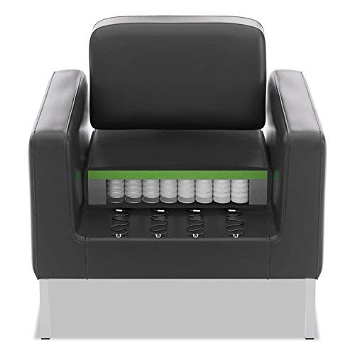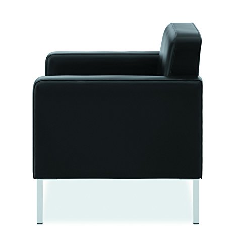 This HON Corral contemporary club chair offers even more than meets the eye. The seat cushion is uniquely engineered for comfort, with over 50 individually wrapped coil springs that reduce pressure points. The back floats above the seat, so cleaning is simple. Moreover, the style is so impressive, people will assume you spent a lot more than you did. SofThread leather upholstery is Black.LEATHER CHAIR: Smooth pliable SofThread leather with tailored stitching and durable steel legs gives this chair an upscale look at an affordable price
