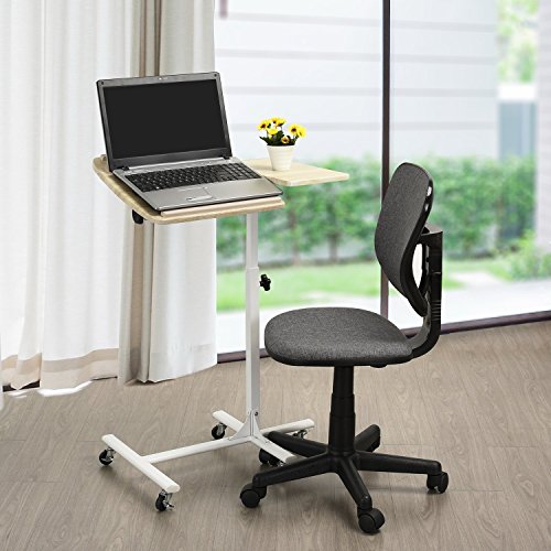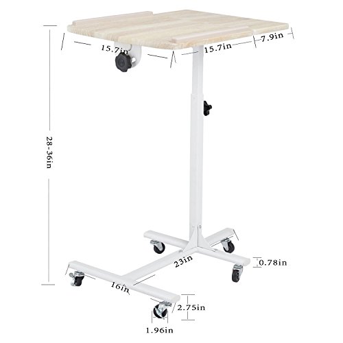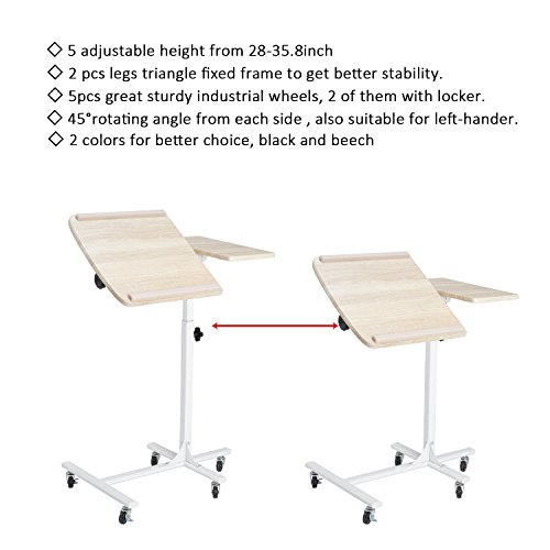 1. Height Adjustable laptop desk: 360 degree swirling castors with locking device, 5 wheels, 2 of them with locking device, so it is easy to mobile and stable. You can move it anywhere easily.