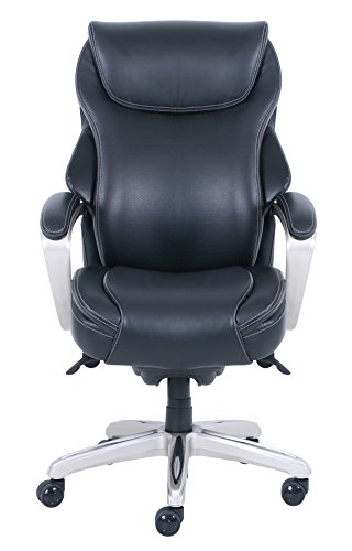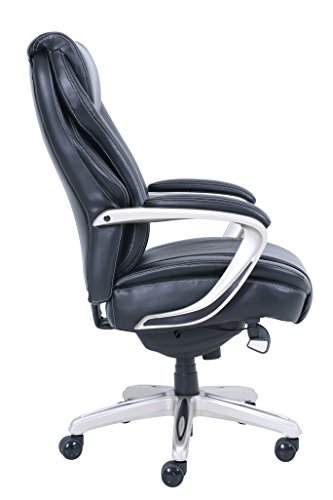 With high-end finishes like soft bonded leather upholstery and elegant wood detailing, the La-Z-Boy Hyland executive office chair with air technology is a statement chair for any traditional office space. The flexible air lumbar system pivots to provide back support whenever you shift. The adjustable Height, recline and layered memory foam cushions will keep you cradled in comfort all day. The La-Z-Boy Hyland executive office chair with air technology is a luxurious addition to any workspace!Ergonomic design with layered memory foam Cushions