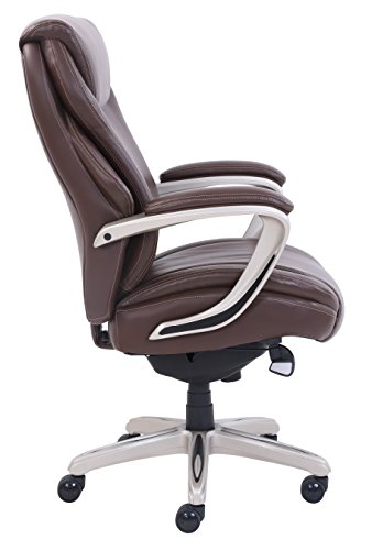 With high-end finishes like soft bonded leather upholstery and elegant wood detailing, the La-Z-Boy Hyland executive office chair with air technology is a statement chair for any traditional office space. The flexible air lumbar system pivots to provide back support whenever you shift. The adjustable Height, recline and layered memory foam cushions will keep you cradled in comfort all day. The La-Z-Boy Hyland executive office chair with air technology is a luxurious addition to any workspace!Ergonomic design with layered memory foam Cushions