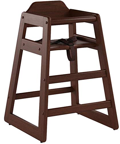 Includes: 1 walnut stained high chair, 1 safety strap, and hardware for assembly
