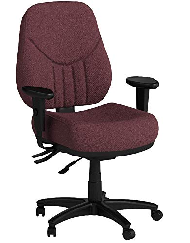 Deep molded seat and back of this high-back, multi-task chair provide added comfort. The chair also features pronounced lumbar support with 2" back height adjustment. Posture control allows pneumatic seat-height adjustment (18-9/10" to 22-2/5"), back-height adjustment, 360-degree swivel and asynchronous control. Adjustable height and width arms provide additional comfort. Chair is available in black frame only. The fabric is 100 percent acrylic. Abrasion rating is 30,000 cycles. The back measures 20-1/2" wide x 7" thick x 23" high. Chair offers a 225 lb. capacity.The chair also features pronounced lumbar support with 2" back height adjustment