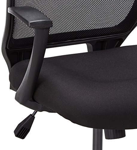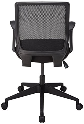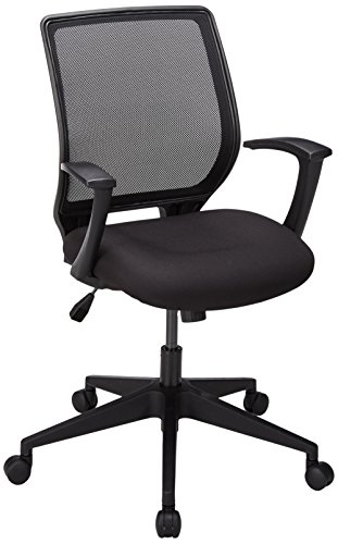 Executive mid-back work chair features a breathable mesh back and contoured seat with black upholstery. Design also offers fixed arms and a five-star base with dual-wheel hard casters. Functions include pneumatic seat-height adjustment, 360-degree swivel, tilt, tilt tension and tilt lock. Capacity is 250 lb.Breathable mesh back and contoured seat with upholstery