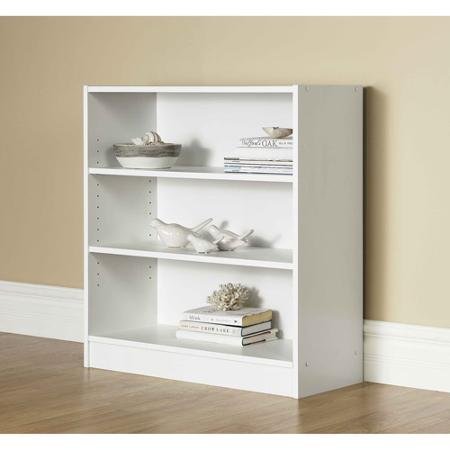 Store your books and other household items in one safe location with the Orion Wide 3-Shelf Bookcase. This set of furniture is made of laminated particle board and is available in various colors. This piece has one fixed shelf and two adjustable shelves. The classic bookcase has a finish that complements a variety of home decors.1 fixed shelf