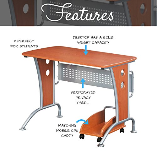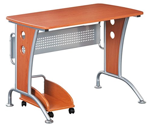 This modern Techni Mobili Computer Desk with CPU Caddy is made of heavy-duty engineered wood panels with a moisture resistant PVC laminate veneer and a scratch-resistant powder-coated steel frame. It features a rear perforated metal modesty panel and a matching mobile CPU caddy. It is ready and easy to assemble . Includes a 5 Year Warranty.Heavy-Duty MDF Panels with a Moisture Resistant PVC Laminate Vaneer in Dark Honey Finish