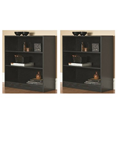 3-Shelf Bookcase | Wide Bookshelf Storage Wood Furniture in Black Finish