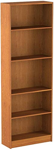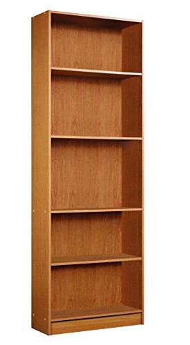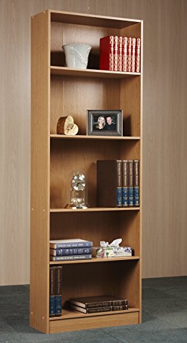 This easy to assemble Five Shelf Bookcase from Mylex allows you to add just the right amount of storage space you need for any room in your home or office. Featuring two fixed shelves as well as three adjustable shelves, this bookcase allows you to customize your storage space with minimal effort. Store all your books, pictures and decorations to help accent any room. It also features a protective kick plate to keep any mess from sliding underneath. Available in Alder Oak or Black Oak finish. Practical. Stylish. Spacious. Mylex has something for everyone.Bookcase with two fixed and three adjustable shelves