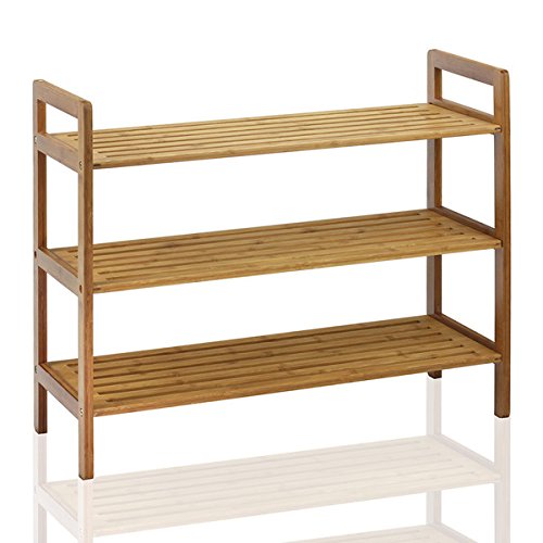 Be free of clutter and keep your shoes neatly organized with the Oceanstar 3-Tier Bamboo Shoe Shelf. The shoe shelf features all around open slats for optimal air flow to minimize odor coming from the shoes. Made from bamboo, it is not only elegantly designed but also sturdy and made to last. The natural finish of the shoe rack gently balances any interior theme of your home or area. There are two rounded edged handles on each side for easy transportation and compact design for fitting into any space. The Oceanstar 3-Tier Bamboo Shoe Shelf will never look out of style and is the perfect solution for all your shoe and organization needs.Bamboo shoe rack