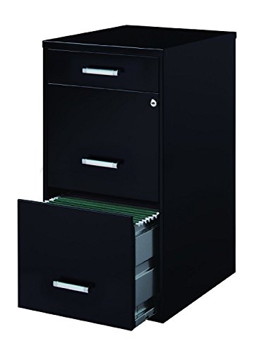 The 3-Drawer Metal File Cabinet by Space Solutions is the ideal storage solution for any small office or home office. Featuring two file drawers and an additional small storage drawer, this files cabinet is the perfect solution for your home office needs. The Space Solution file cabinet features a smart, efficient design that works well in smaller spaces, and fits under most work surfaces or desks. Each drawer features high-sides to accommodate letter sized hanging files. The top pencil drawer can also be perfect storage for other office essentials. Using a patented glide suspension, the drawers have a smooth open and close slide with a three-quarter drawer extension. In addition, you can keep your files and possessions secure by using the built-in lock for both drawers. Bring organization and function to your home or office with this three-drawer file cabinet!Features 2 file drawers and a pencil storage drawer