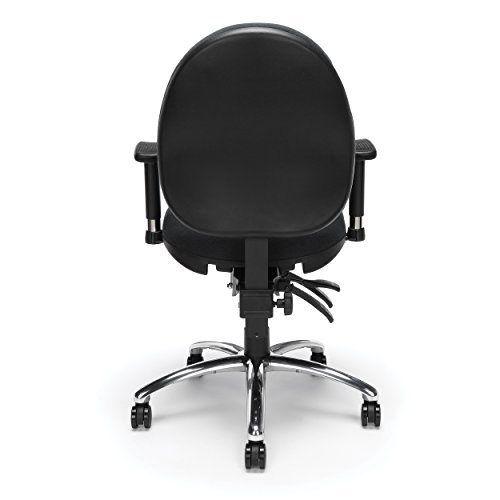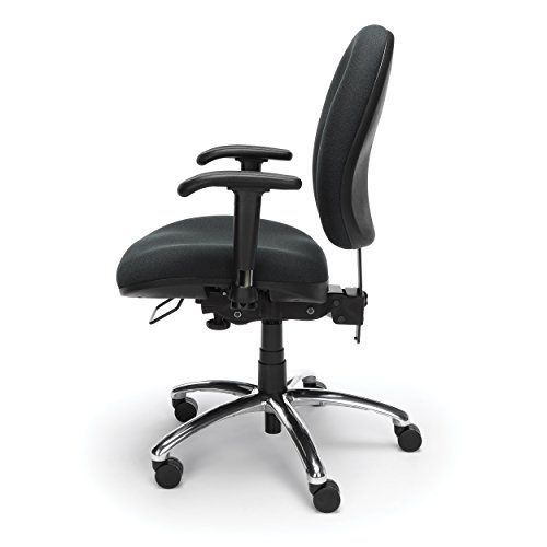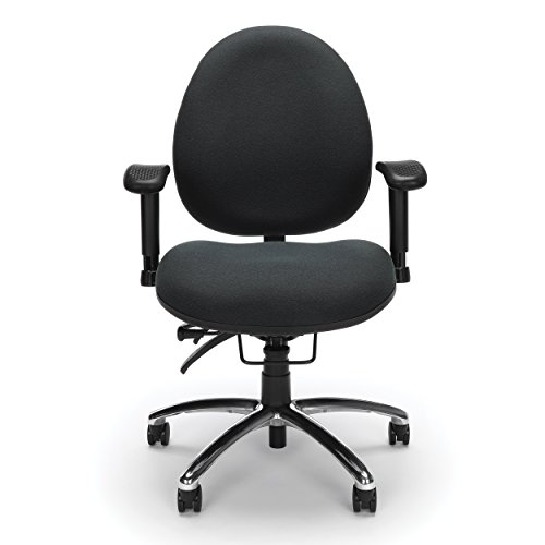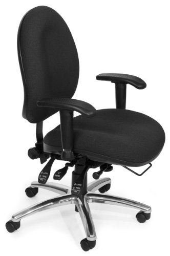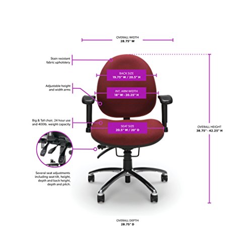 OFM's 247 Series 24-Hour Big & Tall Task Chair provides all-day comfort. Designed for 24-hour use, this stylish chair features an extra-thick, 3" upholstered seat in stain resistant fabric. Users get precise positioning with the back height, depth and pitch adjustment, plus gas lift seat height adjustment, smooth seat tilting action and one-touch sliding seat depth adjustment. The arms adjust for both height and width. The steel-constructed, 27", 5-star wheeled base adds stable mobility. Meets or exceeds ANSI/BIFMA standards. Weight capacity up to 400 lbs.BIG & TALL CHAIR: Relax comfortably in this chair specifically designed for 24-hour use with an extra thick 3" padded upholstered seat with stain resistant fabric