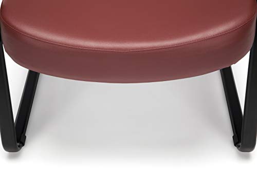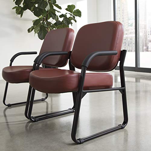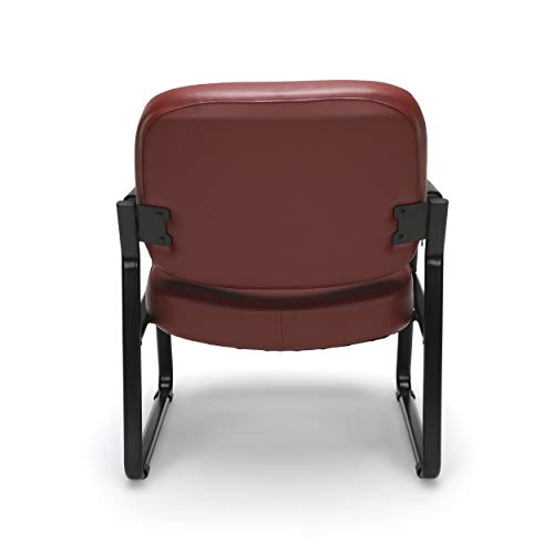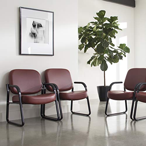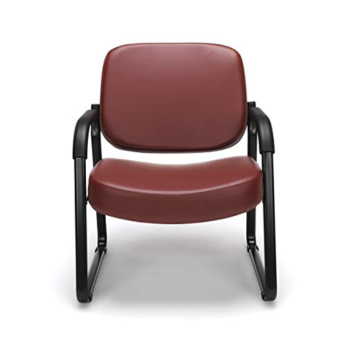 All of your guests can sit comfortably with the OFM Core Collection Big and Tall Guest and Reception Chair with Arms, Anti-Microbial/Anti-Bacterial Vinyl, in Wine. This stylish chair features an extra-thick 4.75" upholstered seat and a 4.25" thick upholstered, padded back cushion. The sturdy 17-gauge, 1.5" oval tube frame stands up to the demands of high-frequency use. The lobby chair is upholstered in anti-microbial and anti-bacterial vinyl that is easy to maintain even in high-use environments.. Padded arms add support and ergonomic comfort. The simple design will complement any reception or area where guest comfort is desired. This roomy guest chair measures 28.50" D x 27.50" W x 35" H. The reception chair is rated for a 400 lb weight capacity and is backed by the OFM Limited Lifetime Warranty.Perfect for an area with people coming and going, the anti-microbial/anti-bacterial vinyl will help to establish a germ-free work environment