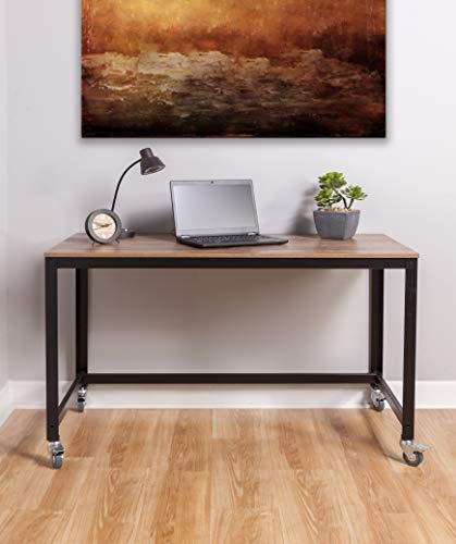 The OneSpace 50-JN16DSK Loft Writing Desk is a multipurpose, multifunction desk designed for studio apartments or any tight space need. No matter where it goes, its 4 smooth rolling casters easily lock firmly into place and unlock just as easily. Its attractive wood surface desktop boasts a weight capacity of 150 pounds with full stability. The desk's durable black steel frame further enhances stability and support. And its size and shape allow you to easily store it out of the way when needed. This multifunction working desk can also serve as an extra table for whatever you need. *Compatible Companion Shelf Item No. 50-JN16SHLF, SOLD Separately* Perfect for small spaces, with a small price and big value. Offered by OneSpace, part of the Comfort Products family. With a history dating back to 1919, Comfort Products specializes in affordable products for better living.Multipurpose desk with sturdy classic oak wood surface; perfect for studio apartments