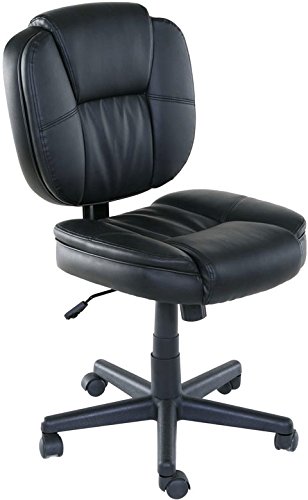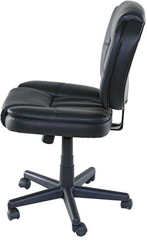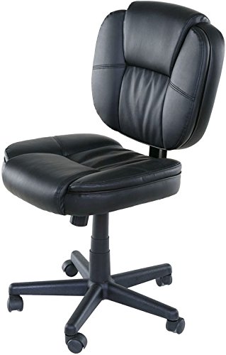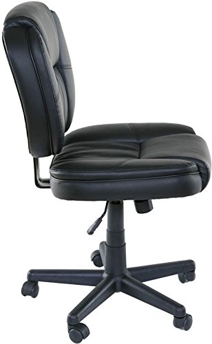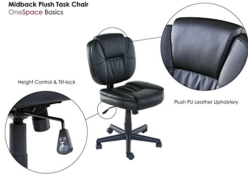 The OneSpace basics 60-2019 mid-back plush task chair raises the bar on what a task chair should be. It has the plush comfort, high styling and real leather appeal of an executive chair. Yet, it's as supportive, Nimble, and mobile as they come. The deeper cushioning, for example, doesn't just keep you more comfortable all day. Special contouring balances that comfort with proper alignment and support. Underneath, it features an ergonomic butterfly mechanism that adjusts tilt and Height adjustment from one control, with an additional, easy to operate tilt tension knob. Its durable nylon coated base features 5 easy-rolling multi-surface casters which support up to 250 pounds. This surprisingly affordable task chair is perfect for any home office or workspace, with lasting value you can See and feel. Offered by OneSpace, part of the comfort products family. With a history dating back to 1919, comfort products specializes in affordable products for better living.Classic Executive design upholstered in PU with PVC for the smooth, supple look of Real Leather