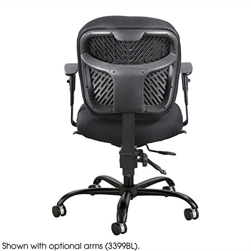Alday offers a different kind of seating experience to meet a vast variety of users. The difference is in the design. Alday was designed as an extensive use task chair, rated for 500 lbs. and 24/7 use. The ample supportive cushioning in the fabric upholstered seat and back deliver ergonomic shaping to fit a variety of body types while providing all day comfort. Features pneumatic seat height adjustment 17 1/2" to 20", 360 degree swivel, tilt adjust with tilt tension and tilt lock, back height adjustment. The durable plastic ergo core back and reinforced mechanism with back tilt adds even more comfort and overall strength. Optional Safco Products Adjustable T-Pad Arms Model 3399BL available (sold separately).Alday 24/7 big and tall office chair with weight capacity up to 500 lbs.