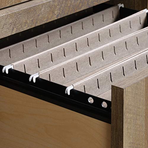 Whether it’s writing out a grocery list or working on your next big project, we’ve got the perfect desk for you. Add beautiful style and design to just about any room in your home with this desk from the Dakota Pass collection. This rustic desk offers a spacious top surface that provides you with room for all your must-have desk essentials like your laptop, stacks of notepads, a lamp and your cup of coffee too. It features two drawers that open and close on smooth metal runners for easy access storage of miscellaneous items like folders, books and other supplies. The lower drawer holds letter-size hanging files so you can keep all your important papers organized. This good-looking computer table will be a great addition to any room! Finished in Craftsman Oak, this home office computer desk will have you feeling motivated and ready to work.Two drawers with metal runners and safety stops