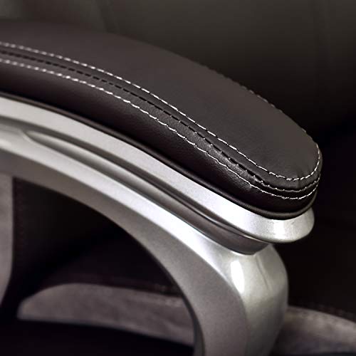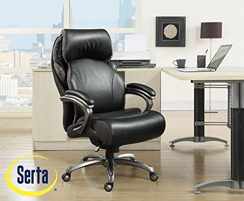 Generous seating area and commercial-grade Big & Tall components accommodates up to 400 lbs. for uncompromising support and durability. Serta office chair has hand-sculpted upholstered arms and smooth bonded leather that delivers elegant style