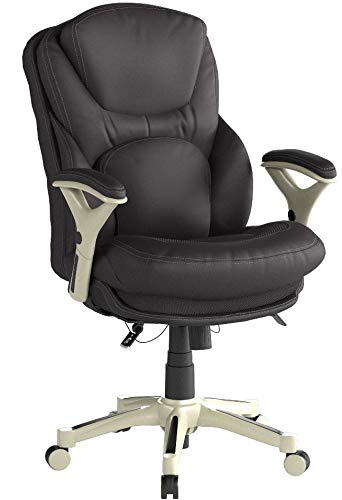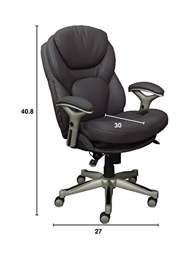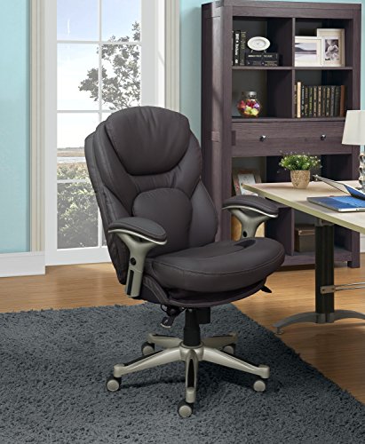 Imagine an office chair that actually promotes strength and flexibility in your back. That's the Serta works executive office chair with back in motion technology. This feature rich, performance-focused chair helps its users become more productive and efficient by maximizing wellness and comfort while seated. The back in motion active seat technology swivels the lumbar forward like the pelvis tilt exercise, promoting strength and flexibility in your core. Its push-button arm adjustable armrests and pneumatic Height and seat adjustment can be customized to find the right fit for you. And its multi-layered, pillow soft cushions pamper like a luxury mattress so you'll feel refreshed and rejuvenated, even after a long day.Back in motion technology pivots the lower Back forward to Flex pelvis and keep your Back in a positive neutral position