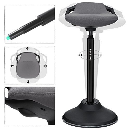This SONGMICS wobble chair allows you to rock, swivel, tilt and lean slightly to make sitting fun and promote healthy posture. The under-seat button allows you to adjust height to make the stool perfect for both standing and sitting desks. 39.5 cm dia. large base keeps it stable, so you could enjoy safe and reliable sitting. With the bottom anti-skid PVC pad, the active sitting chair is ideal for carpet, wood and tile floors in the office, laboratory and bar. Don't wait another minute! Click" Add to Cart" and enjoy active sitting! Specifications:
