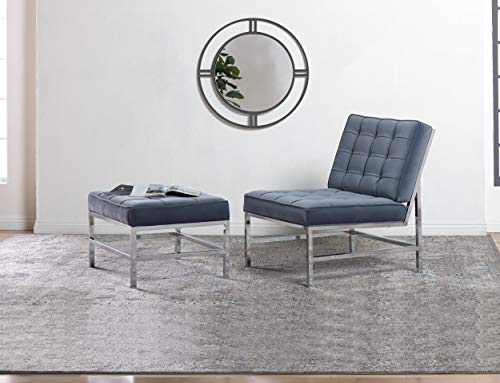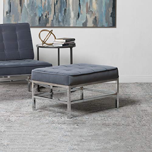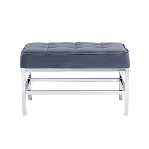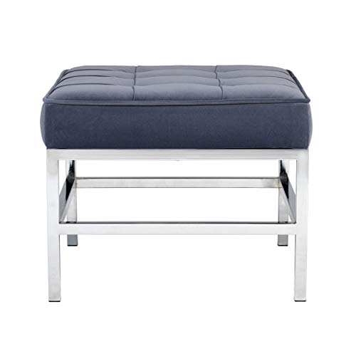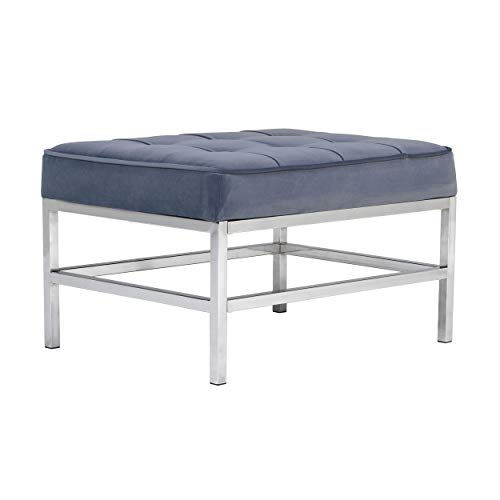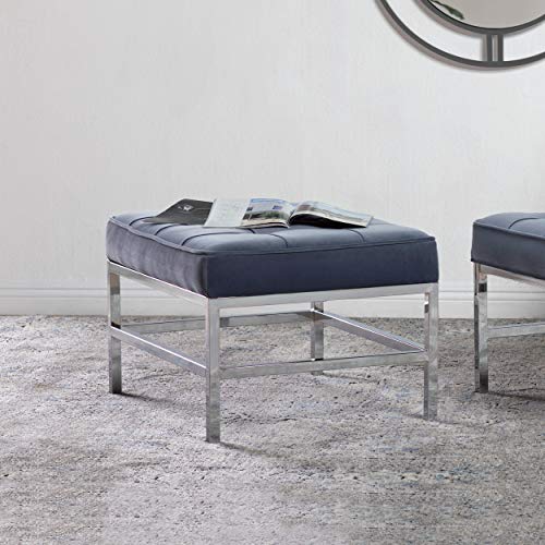 The Ashlar Velvet Tufted Ottoman by Studio Designs Home perfectly complements our Ashlar Accent Chair to create the perfect lounge seating for your modern living room. It can also stand alone to provide an extra seating option for your living space. The handsome plush velvet upholstery with polished chrome frame create a sleek and stylish seating option for you. Unlike traditional velvet, this soft, polyester fabric is easy to clean. Its mid- century modern simple lines make it perfect for guest seating in the living room or office. We recommend our Ashlar Accent Chair as a companion piece.Overall Dimensions: 30" W x 22.75" D x 17.75" H