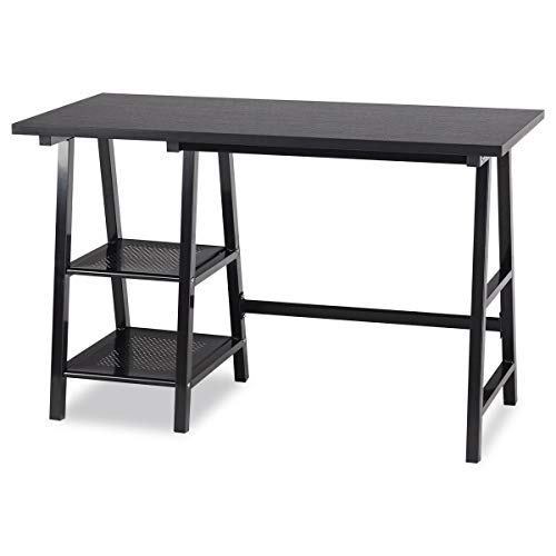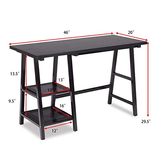 Weight Capacity: 250lbs【A-Shape Shelves】There are two tiers of A-shape shelves, whose design bring the maximum usage of this desk, making users the random storage as they favor. As we can see the bottom shelf is a little larger than the upper one, you could put more things or bigger item if you want.