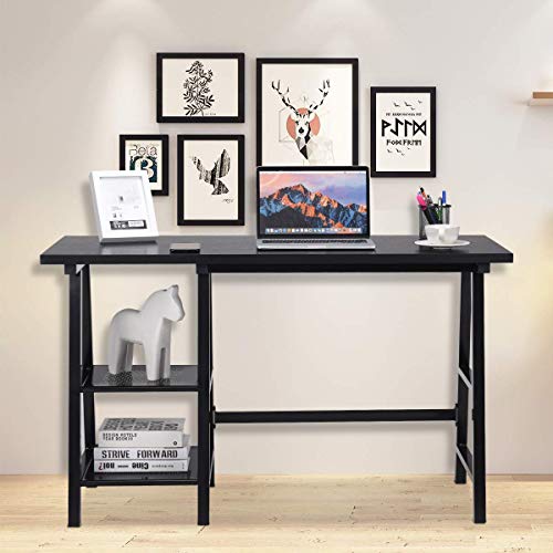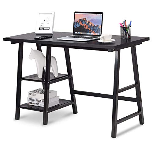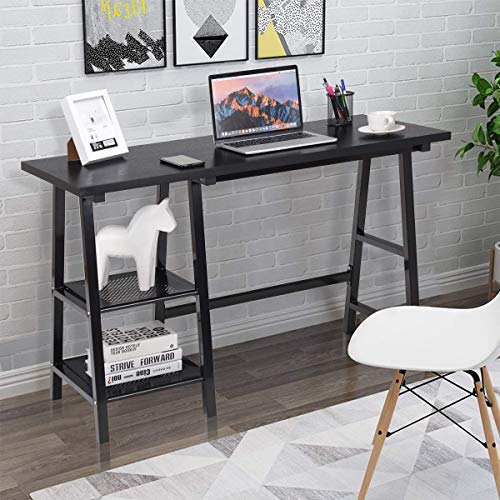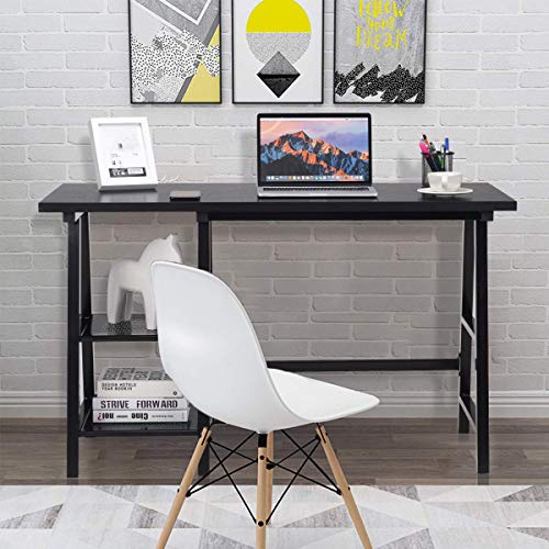 This computer desk features heavy-load iron frame & durable MDF boards, which provide a very high quality and long service life for this desk. It has a simple, elegant modern design, but also has enough storage space for things such as books. As you could can see the bottom shelf is a little larger than the upper one, you could put more things or bigger item if you want. And this different area design could offer you classified storage that makes your living or office area much tidier. Besides, this desk is not only for office computing, but also for home study and library learning. What's more, this desk also suitable for the VIP area to serve customer, the easy-matching style and color could get into many different situation you need. Now you can own it at a great price. Take it home and start tapping on this amazing desk!