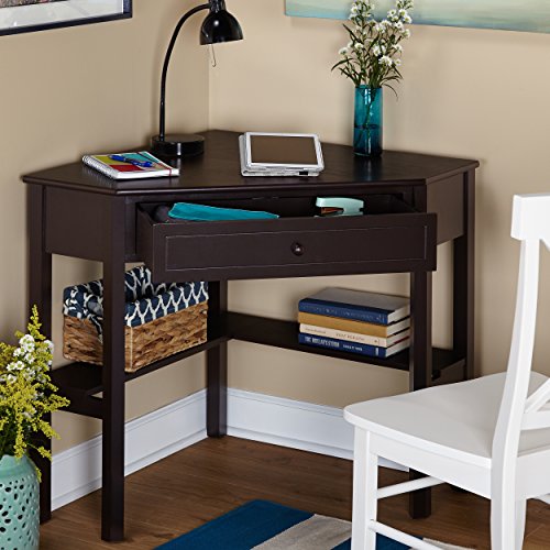 Create your own work environment while taking up a minimum of space with the Corner Desk by TMS. The Corner Desk features a roomy drawer and lower shelf to stow office supplies. Great for maximizing space in any room. Sleek and simple, this corner desk is durable and functional, with its shelf space and drawer. The vibrant red color is sure to catch the eye of guests in any room. The Corner Desk is constructed of MDF with solid wood legs. Available in Antique White or Espresso. This corner desk measures 42” x 28” x 30”H and weighs 39 Lbs. Since 1985, Target Marketing Systems has been Offering Top-Notch Furniture at Affordable Prices. That Goal has not Changed and TMS will Continue to Give You the Best.Practical Dimensions: This Corner Desk Has Been Designed With Easy to Fit Dimensions of 42" x 28" x 30"H, and Weighs 39 Lbs. Making it Ideal to Place In Your Home/Office Area