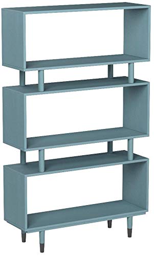 Put your own twist on the Mid-Century Modern trend with the Margo Bookshelf. The quality of this unique design and muted blue finish make this the new must have accent piece for your home. The thoughtful spacing of connected shelves, rather than stacked cubes, and extra detail of silver finish in the tapered legs set this piece apart from the rest. Smart storage with style you won't want to hide make the Margo Bookshelf perfect for showing off in your living room, home office, or anywhere in your home.Three distinct shelves in subtle antique blue finish