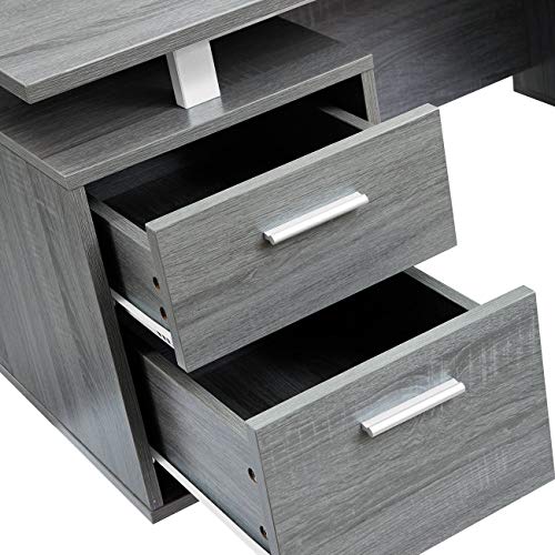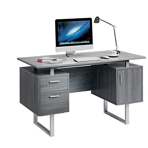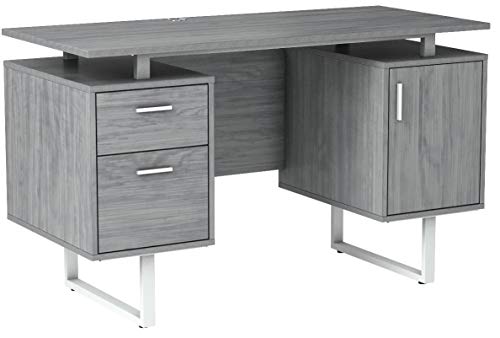 Techno mobile modern office desk is sleek and contemporary, this desk is the perfect combination of function, durability and design in a modern form. With clean lines, a floating top work station and sleek track metal legs, this desk will add pizzazz to any home office. Featuring two storage drawers and a file cabinet to help keep you organized with a large desktop surface to provide plenty of room for all your hardware and working needs. Color: GrayLarge floating Top work surface, paired with two sleek silver track metal legs