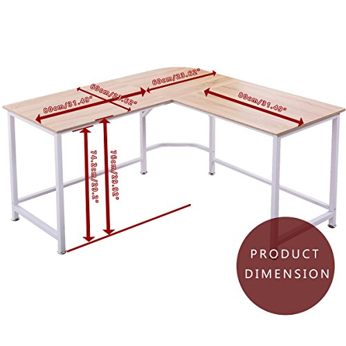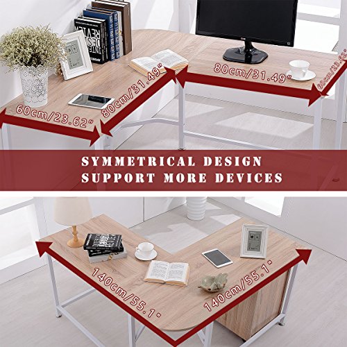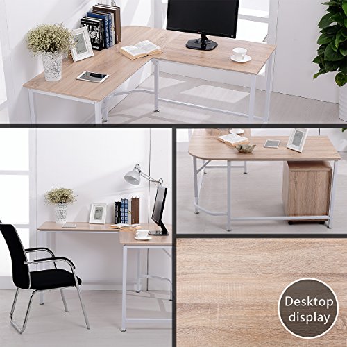 L-Shaped Desk made of CARB P2 Class MDF board and thicker steel with epoxy coating.