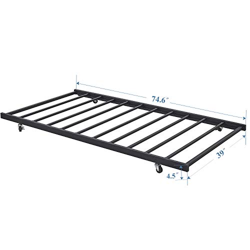 The trundle includes four easy-glide casters - two locking and two non-locking. Premium steel slat support, no shaking, not easily deformed. Weight capacity up to 300 lbs.