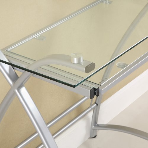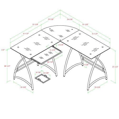 Stylish, modern design Polished and beveled, tempered safety glass Steel frame with powder coat finish Space saving L-shape design Universal, autonomous CPU stand Sliding keyboard tray Each section supports 100 lbs. Ships ready-to-assemble with step-by-step instructionsPolished and beveled, tempered safety glass